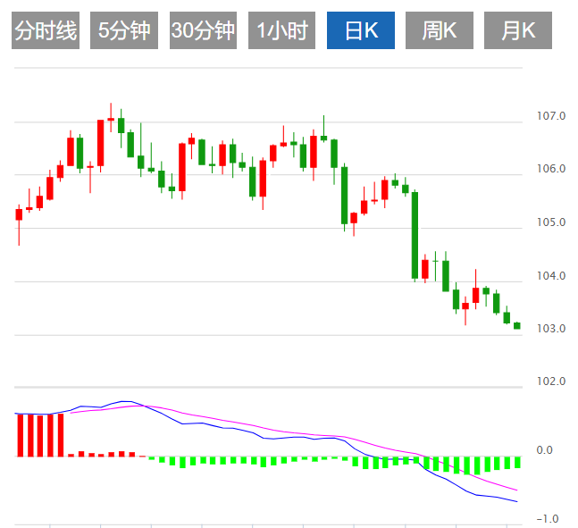 美元指数:截止发稿,美元指数走低,现报103.12,跌幅0.09%。美国经济数据疲弱打压美元。美国人口普查局週一公佈的 10 月份新屋销售月率下降 5.6%,至 67.9 万户,低于期值 72.5 万户。此外,11月达拉斯联邦储备银行制造业指数从前值-19.2降至-19.9。此外,通膨走低的预期也对美元构成了压力,并增加了投资者对大宗商品的偏好。上週,美国採购经理人指数(PMI)数据显示,11 月初美国私部门的成长速度持续放缓。市场押注联准会将在明年年中将降息。技术上,从美元指数(DXY)的日线图和周线图上看,美元正在远离其生命线。因此,更多的下行空间开始打开,交易者可能会进一步平仓美元淨多头部位。如果本週任何一个数据点出现负面暗示,都可能意味著美元和 DXY 将出现更大幅度的下行。