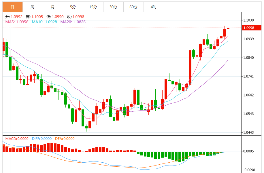 欧元:欧元/美元上涨,收报1.0992,涨幅0.36%。技术面上,汇价上行的初步阻力位于1.1024,进一步阻力位于1.1054,关键阻力位于1.1099;汇价下行的初步支撑位于1.0949,进一步支撑位于1.0904,更关键支撑位于1.0874。
