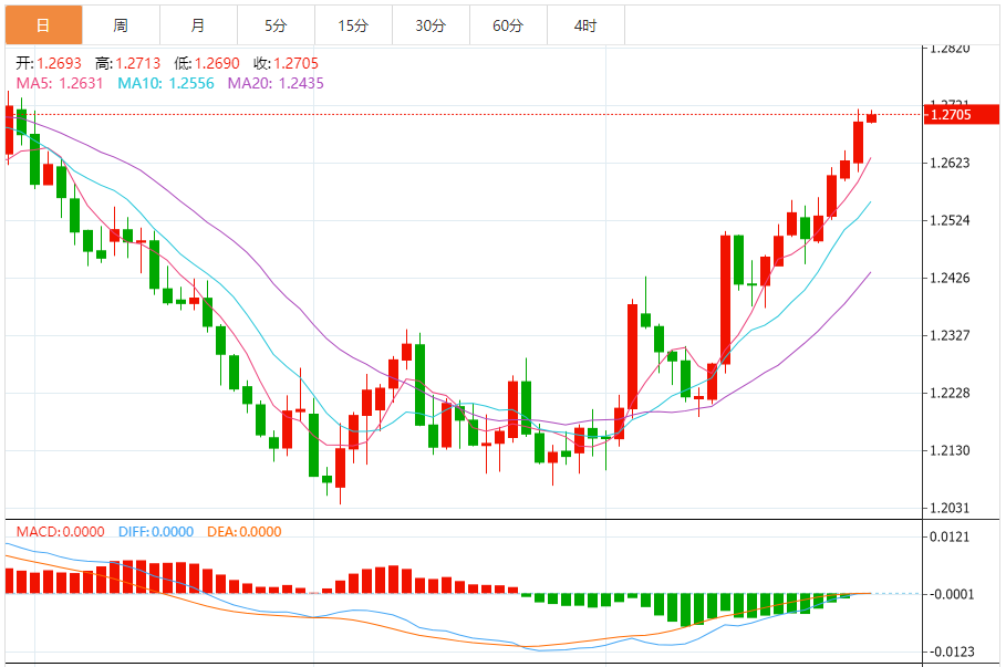 英镑:英镑/美元上涨,收报1.2693,涨幅0.53%。技术面上,汇价上行的初步阻力位于1.2733,进一步阻力位于1.2778,关键阻力位于1.2842;汇价下行的初步支撑位于1.2625,进一步支撑位于1.2561,更关键支撑位于1.2516。