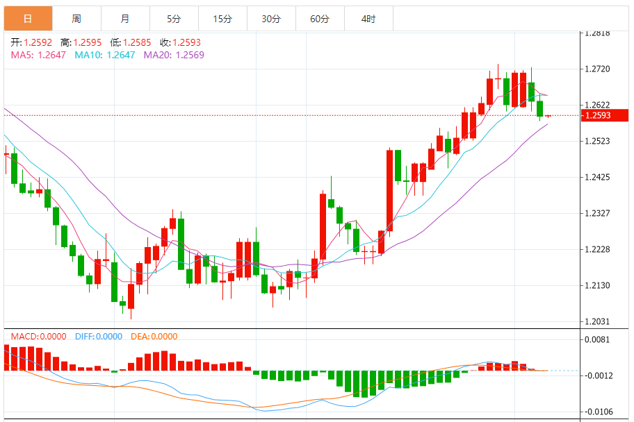 英镑:英镑/美元下跌,收报1.2590,跌幅0.33%。技术面上,汇价上行的初步阻力位于1.2639,进一步阻力位于1.2682,关键阻力位于1.2713;汇价下行的初步支撑位于1.2564,进一步支撑位于1.2533,更关键支撑位于1.2489。