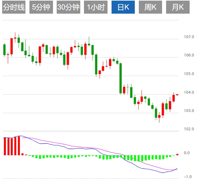 美元指数:截止发稿,美元指数走高,现报103.98,涨幅0.02%。DXY指数的上行趋势威胁到20.104附近的00日均线。根据ISM的数据,美国服务业在11月有所扩张。投资者热切等待本周五公布的失业率和非农就业报告。11月的单位劳动力成本和ADP就业变化数据将于周三公布。技术上,日线图上的指标清楚地描绘了美元的看涨势头增强。尽管处于负值区域,但相对强弱指数 (RSI) 显示出正斜率,而移动平均收敛散度 (MACD) 正在打印上升的绿色条,从而确认了当前的看涨强度。
