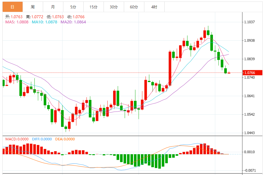 欧元:欧元/美元下跌,收报1.0764,跌幅0.30%。技术面上,汇价上行的初步阻力位于1.0792,进一步阻力位于1.0821,关键阻力位于1.0838;汇价下行的初步支撑位于1.0746,进一步支撑位于1.0729,更关键支撑位于1.07。