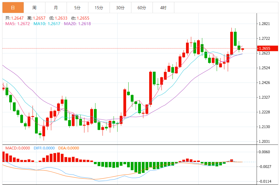 英镑:英镑/美元下跌,收报1.2647,跌幅0.25%。技术面上,汇价上行的初步阻力位于1.2691,进一步阻力位于1.2735,关键阻力位于1.2767;汇价下行的初步支撑位于1.2615,进一步支撑位于1.2583,更关键支撑位于1.2539。