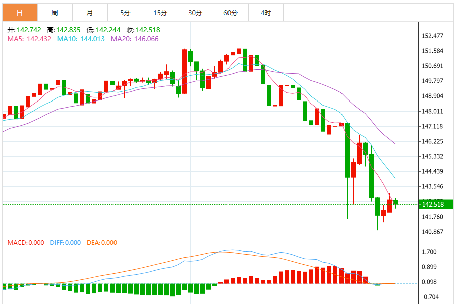 日元:美元/日元上涨,收报142.758,涨幅0.44%。技术面上,汇价上行的初步阻力位于143.299,进一步阻力位143.803,关键阻力位于144.449;汇价下行的初步支撑位于142.149,进一步支撑位于141.503,更关键支撑位于140.999。