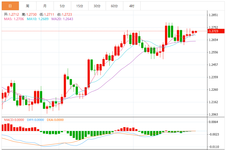 英镑:英镑/美元上涨,收报1.2723,涨幅0.22%。技术面上,汇价上行的初步阻力位于1.2740,进一步阻力位于1.2759,关键阻力位于1.2787;汇价下行的初步支撑位于1.2693,进一步支撑位于1.2664,更关键支撑位于1.2646。