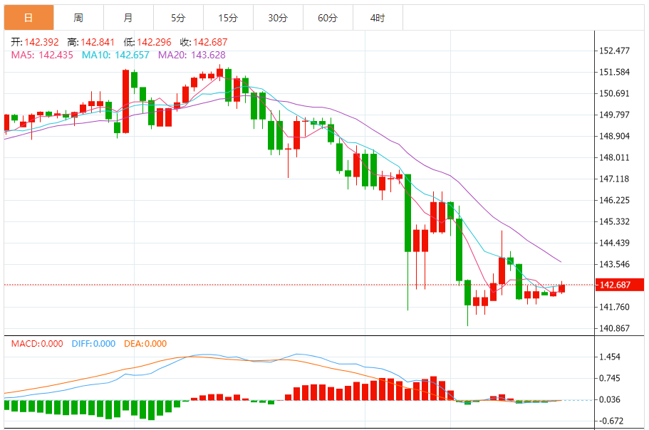 日元:美元/日元上涨,收报142.392,涨幅0.08%。技术面上,汇价上行的初步阻力位于142.625,进一步阻力位142.896,关键阻力位于143.167;汇价下行的初步支撑位于142.083,进一步支撑位于141.812,更关键支撑位于141.541。