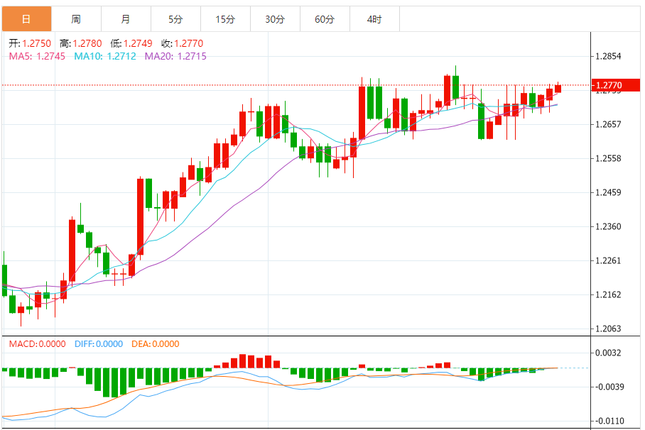 英镑:英镑/美元上涨,收报1.2760,涨幅0.14%。技术面上,汇价上行的初步阻力位于1.2789,进一步阻力位于1.2830,关键阻力位于1.2880;汇价下行的初步支撑位于1.2698,进一步支撑位于1.2648,更关键支撑位于1.2607。