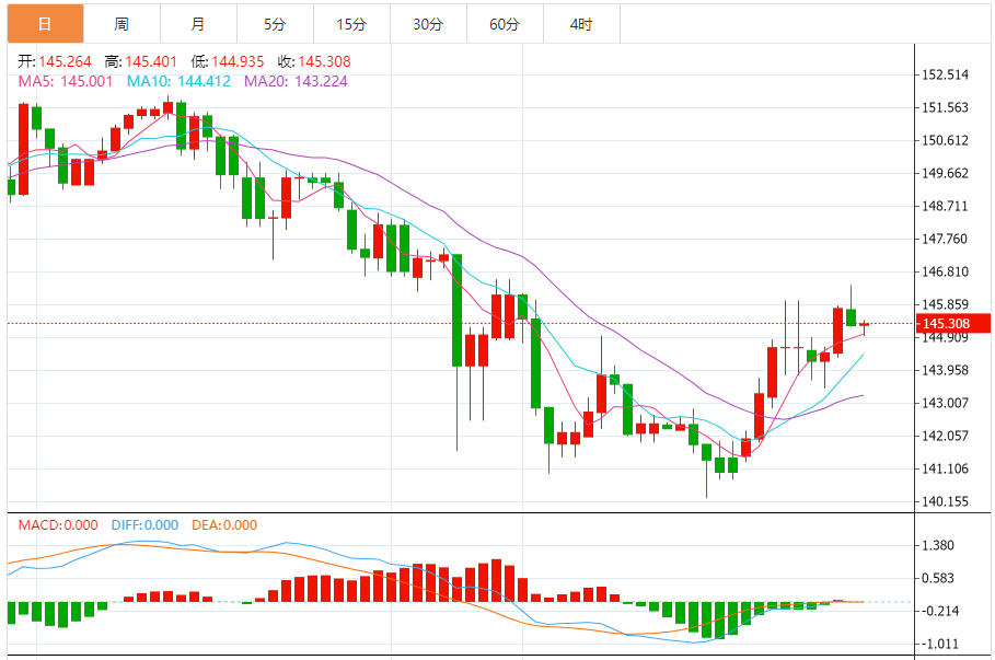 日元:美元/日元下跌,收报145.260,跌幅0.34%。技术面上,汇价上行的初步阻力位于146.127,进一步阻力位146.985,关键阻力位于147.557;汇价下行的初步支撑位于144.697,进一步支撑位于144.125,更关键支撑位于143.267。