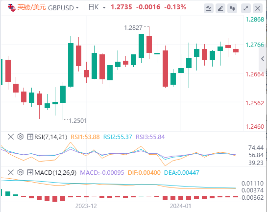 英镑/美元在1.2750附近交易较好,在低迷的市场中苦苦挣扎。英国国家统计局(ONS)周五公布的数据显示,英国经济增长0.3%,略高于11月的预期,但仍有陷入温和衰退的风险。