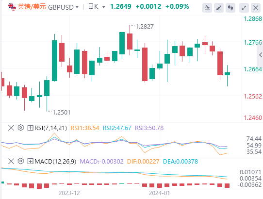 英镑/美元正在反弹测试1.2650,此前英国12月整体年度CPI通胀率意外上升至4.0%,而预期降至3.8%。