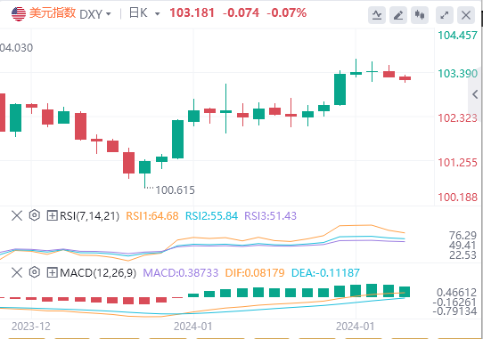 美国1月一年期通胀率预期录得2.9%,为2020年以来最低水平,消费者信心达到2021年7月以来的最高水平。利率互换合约显示,美联储3月份降息的可能性已进一步降至40%左右。