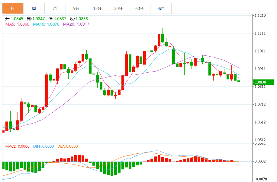 欧元:欧元/美元下跌,收报1.0846,跌幅0.35%。技术面上,汇价上行的初步阻力位于1.0890,进一步阻力位于1.0936,关键阻力位于1.0971;汇价下行的初步支撑位于1.0810,进一步支撑位于1.0775,更关键支撑位于1.0730。