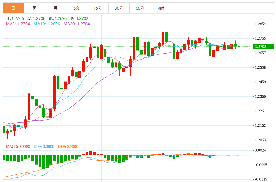 英镑:英镑/美元下跌,收报1.2706,跌幅0.15%。技术面上,汇价上行的初步阻力位于1.2739,进一步阻力位于1.2771,关键阻力位于1.2800;汇价下行的初步支撑位于1.2678,进一步支撑位于1.2648,更关键支撑位于1.2616。