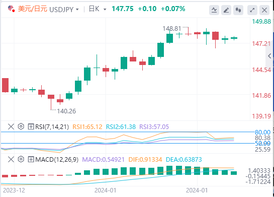 来自日本的数据显示,1月份东京消费者物价指数(CPI)同比上涨1.6%,低于12月份的2.4%。同时,日本央行在政策会议纪要中表示,成员国同意必须耐心地维持宽松政策。美元/日元周五早盘走高,最后交易价格略低于148.00。