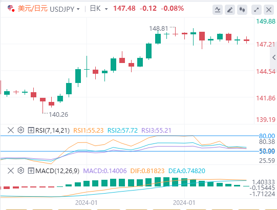继周一大幅下跌后,美元/日元周二小幅上扬,并在周三早些时候继续向148.00附近伸展。日本内阁府报告称,1月份日本消费者信心指数从12月份的37.2升至38。