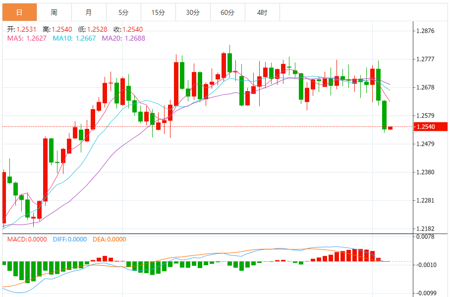 英镑:英镑/美元下跌,收报1.2531,跌幅0.78%。技术面上,汇价上行的初步阻力位于1.2605,进一步阻力位于1.2675,关键阻力位于1.2719;汇价下行的初步支撑位于1.2491,进一步支撑位于1.2447,更关键支撑位于1.2376。