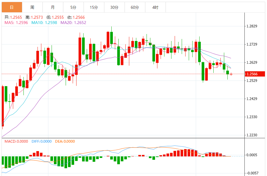 英镑:英镑/美元下跌,收报1.2565,跌幅0.21%。技术面上,汇价上行的初步阻力位于1.2650,进一步阻力位于1.2673,关键阻力位于1.2705;汇价下行的初步支撑位于1.2594,进一步支撑位于1.2562,更关键支撑位于1.2539。