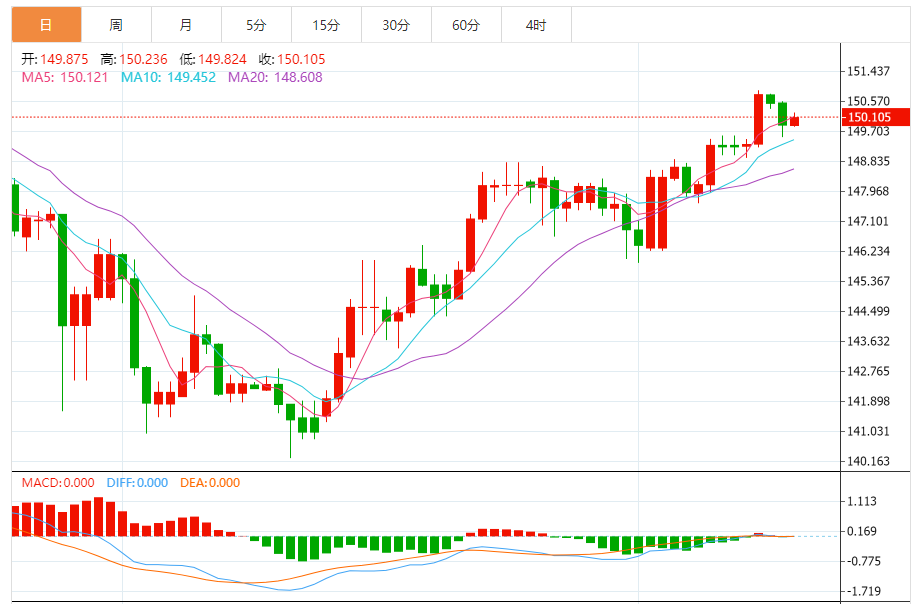 日元:美元/日元下跌,收报149.891,跌幅0.42%。技术面上,汇价上行的初步阻力位于150.494,进一步阻力位151.06,关键阻力位于151.557;汇价下行的初步支撑位于149.431,进一步支撑位于148.934,更关键支撑位于148.368。