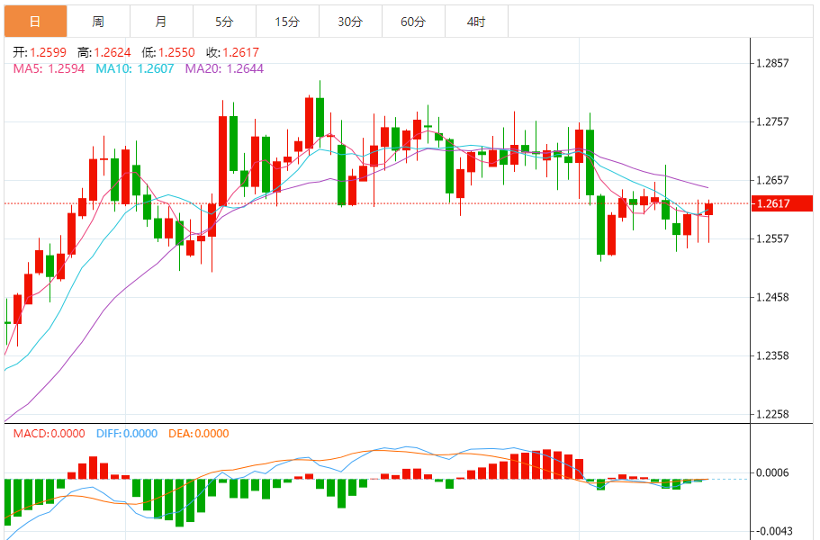 英镑:英镑/美元上周五持平,收报1.2598。技术面上,汇价上行的初步阻力位于1.2621,进一步阻力位于1.2642,关键阻力位于1.2683;汇价下行的初步支撑位于1.2558,进一步支撑位于1.2518,更关键支撑位于1.2496。