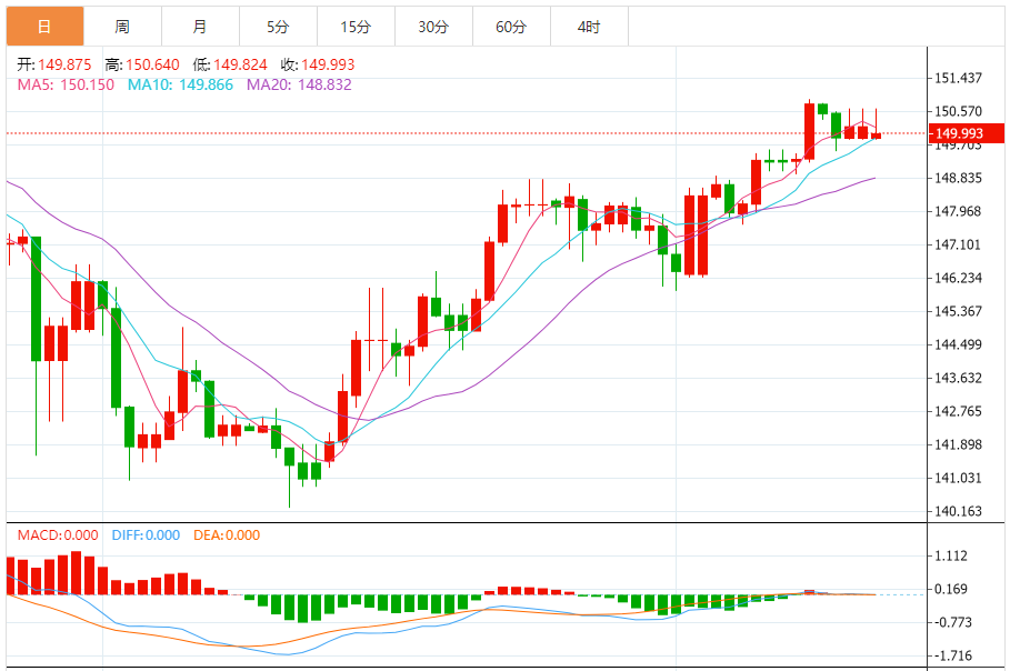 日元:美元/日元上周五上涨,收报150.185,涨幅0.20%。技术面上,汇价上行的初步阻力位于150.494,进一步阻力位151.06,关键阻力位于151.557;汇价下行的初步支撑位于149.431,进一步支撑位于148.934,更关键支撑位于148.368。