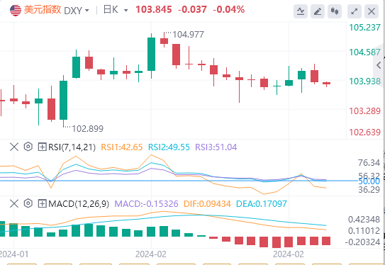 美债收益率的重新走低表明,市场再次关注今年6月或7月可能到来的降息。不过,由于现在市场的预期与美联储12月经济预测摘要中公布的预期一致,即年内降息3次,美元在2024年的前几周已经站稳脚跟,但自2月份的高点以来有所走弱。短期看跌方向似乎已在200日简单移动均线处找到支撑,如果不是制造业数据疲软,美元本应出现合理涨幅。