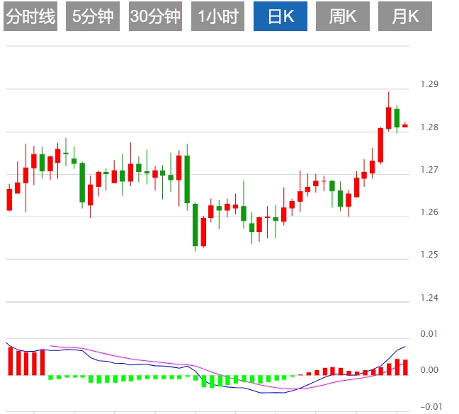 日线图上,澳元/美元呈大涨过后的小幅调整之中,若调整能保持在0.66之上,则后市仍有望延续上升的走势。一切要观察周二晚间美国通胀数据能带来什么样的冲击影响。