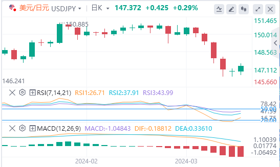 日本央行(BoJ)行长植田和男周二在议会发表讲话时表示,一旦他们“稳定和可持续地”实现2%的通胀,他们将寻求退出负利率、收益率曲线控制和其他大规模货币宽松措施。在连续六个交易日收于负值区域后,美元/日元在亚洲时段转为上涨,最后一次交易在略低于147.50的正值区域。