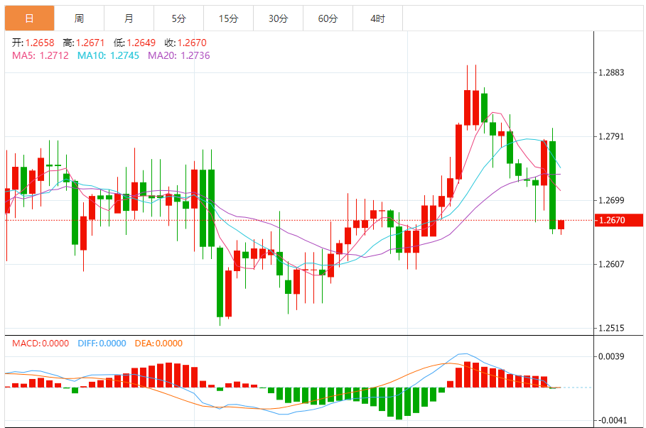 英镑/美元:英镑/美元测试支撑位1.2650 – 1.2685,若成功测试将为测试1.2530 – 1.2550的支撑位铺平道路。