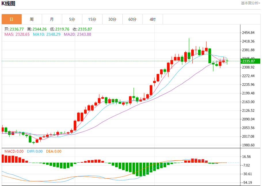 现货黄金:截止北京时间20:19,现货黄金下跌,现报2335.80,跌幅0.07%。纽市盘前,金价在2325.90美元找到了坚实的支撑,显示出轻微的看涨倾向。EMA50对价格构成了较小的阻力,表明价格有进一步上涨的潜力。