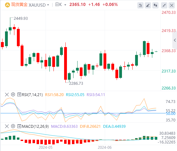周三亚盘,黄金交投于2365.10附近。越来越多的人猜测美联储(Fed)最早可能在9月开始降息,这继续支撑着非孳息金属。此外,欧洲和全球的政治不确定性可能会提振黄金价格,黄金是一种传统的避险资产。另一方面,中国央行连续第二个月暂停购买黄金可能会促使交易员减少对黄金的看涨押注,因为中国是世界上最大的黄金消费国。投资者将密切关注美联储主席杰罗姆·鲍威尔(JeromePowell)周三的第二次半年度证词,以及美联储主席米歇尔·鲍曼(MichelleBowman)和奥斯坦·古尔斯比(AustanGoolsbee)的讲话。周四,美国消费者物价指数(CPI)通胀数据将受到密切关注。这些数据可能会为美国的利率路径提供更清晰的信息。