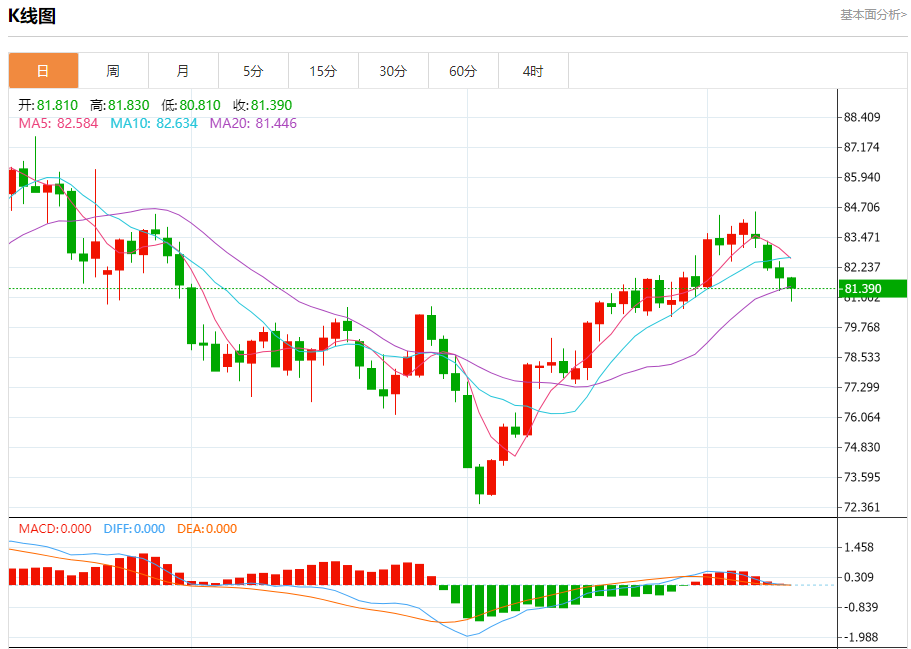 原油市场:截止北京时间20:21,美油下跌,现报81.400,跌幅0.01%。纽市盘前,原油价格以明确的积极态度交易,以测试关键阻力81.84美元,这是未来一段时间预期修正看跌情景持续的第一个保护因素,因为价格需要保持在该水平和82.60美元以下,以保持看跌趋势活跃,受先前完成的双顶形态影响,提醒您我们的下一个主要目标位于80.08美元。