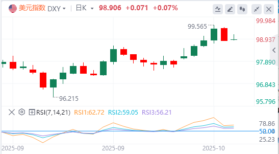 上周五,美元指数盘中跳水,跌破99关口,最终收跌0.56%,报98.835,结束四日连涨。截至目前,美元报价98.90。