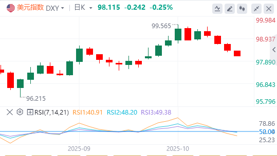 美元指数延续跌势,美债收益率普跌,基准的10年期美债收益率跌破4%,截至目前,美元报价98.11。