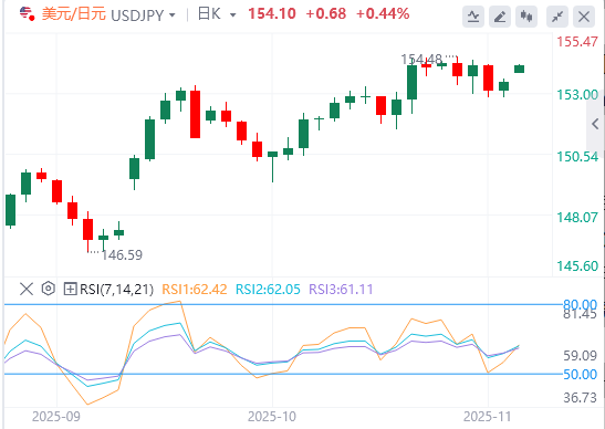 欧洲早盘,美元/日元小幅走高,交投于154.00附近的正值区域。日本首相高市早苗的经济顾问相田卓司周一警告称,日本央行(BoJ)在12月加息将存在相当大的风险,并认为,如果日本央行能够看到经济在2026财年实现稳健增长,那么1月份加息将更加可行。当天早些时候,日本的数据显示,9月份领先经济指数从107小幅上升至108。