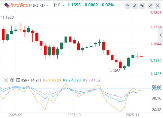 英镑:截至发稿,英镑/美元徘徊在1.3167附近。英镑/美元在周一继续加速,延续至四天的连胜纪录,因为英镑交易员为最新一轮的英国就业数据做好准备。退伍军人节将导致周二美国市场流动性减弱,但市场希望美国可能接近结束历史上最长的政府资金停摆,这应该会保持风险偏好的强劲,并对看涨的美元(USD)流入施加硬性限制。技术面上,RSI处于温和区域,因此短期内有足够的空间获得额外的动力。