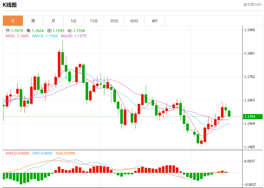 欧元/美元:截止北京时间21:20,欧元/美元下跌,现报1.1595,跌幅0.23%。纽市盘前,(欧元兑美元)的价格在最后一个交易日下跌,因为它试图寻找一个上涨的低点,以此作为基础,帮助它获得复苏所需的看涨动力,因为来自EMA50上方交易的积极支持在继续,并且在短期看涨修正波的主导下,除了通过相对强度指标达到超卖水平,与价格运动相比被夸大,以表明形成正背离。