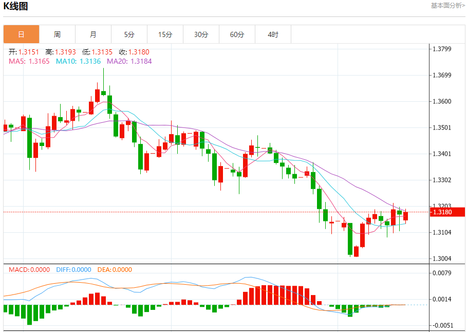 英镑/美元:截止北京时间21:20,英镑/美元上涨,现报1.3182,涨幅0.06%。纽市盘前,(GBPUSD)价格在最后一个交易日小幅下跌,原因是关键阻力稳定在1.3185,试图获得可能有助于其恢复和突破该阻力的看涨势头,同时继续以EMA50上方的交易为代表的动态支撑,加强了短期基础上的校正看涨波的强度,特别是其沿着趋势线交易。