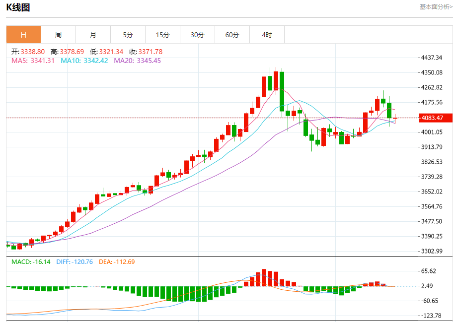 现货黄金:截止北京时间21:20,现货黄金下跌,现报4083.57,跌幅0.03%。纽市盘前,(黄金)价格在最后一个交易日的水平上波动交易,受短期基础上打破次要看涨趋势线的影响,在卸载其超卖条件后,相对强度指标上出现负面信号,这使得价格超过其EMA50的支撑,加剧了未来一段时间的负面压力。