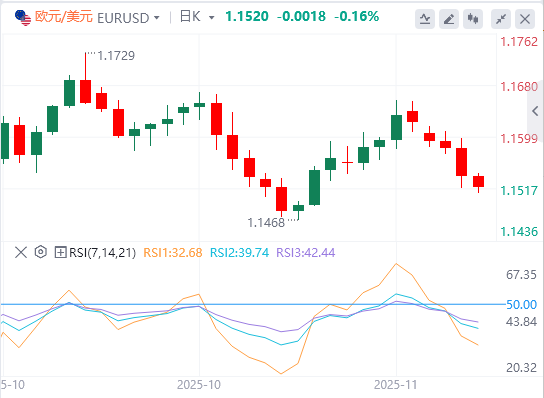欧元/美元周三下跌近0.4%,连续第四天收于负区间。货币对周四早盘仍处于劣势,跌向1.1500。