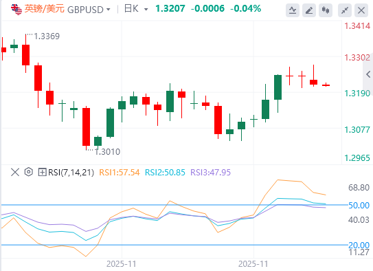 英镑:截至发稿,英镑/美元徘徊在1.3207附近。财政大臣瑞秋·里夫斯因英国政府预算状况而面临新的批评。财政大臣里夫斯被指控严重歪曲英国财政的真实状况。尽管预算责任办公室(OBR)最近指出,由于工资增长强于预期和税收收入高于预期,抵消了生产力下降,现政府面临的预算税收“不可避免的增加”,财政大臣里夫斯仍坚持“不可避免的增加”预算税。技术面上,如果英镑兑美元成功企稳在1.3265上方,将朝1.3360至1.3375阻力位移动。