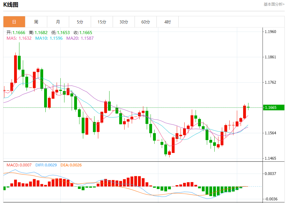 欧元/美元:截止北京时间21:20,欧元/美元下跌,现报1.1665,跌幅0.05%。纽市盘前,(欧元兑美元)的价格在最后一个盘中交易中恢复上涨,在今天的早盘交易中经历了自然的获利回吐阶段,卸载了相对强度指标上的超买条件,获得了更积极的势头,在短期基础上的牛市修正波占主导地位,其交易沿着支持该轨道稳定性的趋势线进行。