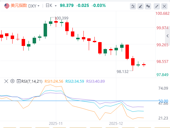 上周五,美元指数有所反弹,但在美盘时段几乎回吐日内全部涨幅,截至目前,美元报价98.37。