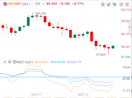 周二,由于非农数据喜忧参半,美元指数在美盘中一度跳水跌破98关口,但随后收复大部分失地,截至目前,美元报价98.38。