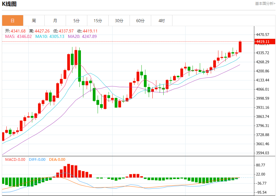现货黄金:截止北京时间21:20,现货黄金上涨,现报4420.39,涨幅1.89%。纽市盘前,(黄金)价格在最后一个盘中交易中加强了涨幅,突破了4,380美元的关键历史阻力,达到了新的历史高点,这一惊人的表现得到了短期主要看涨趋势的充分支持,伴随着支撑这一看涨轨道的次要看涨趋势线的继续交易,表明贵金属的购买能力继续存在,此外,尽管达到了超买水平,但相对强度指标也出现了积极信号。