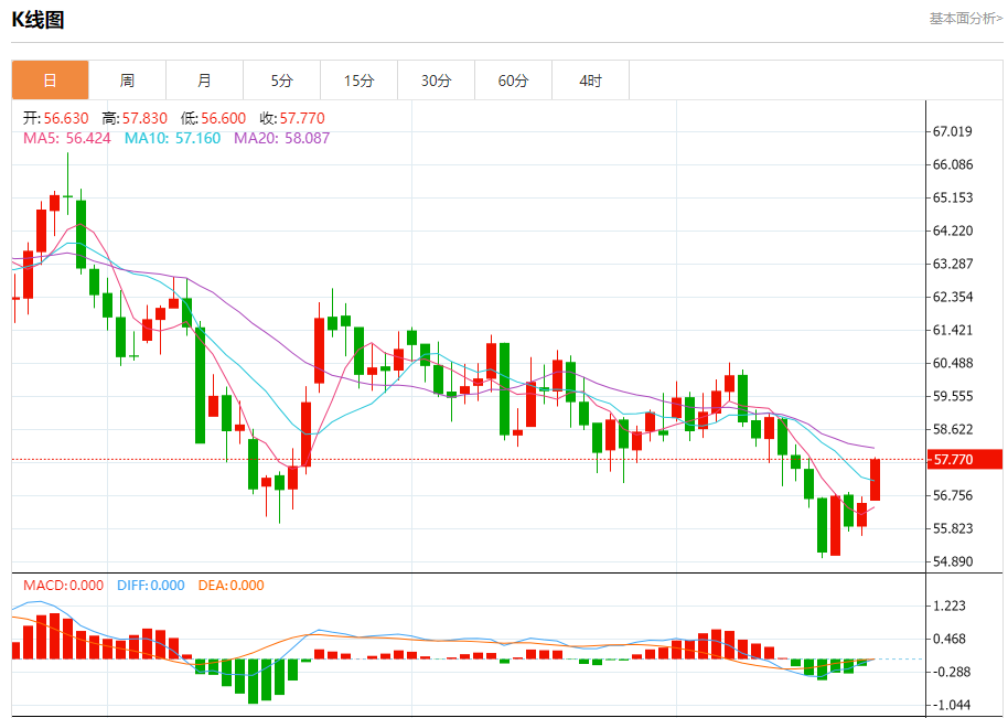 原油市场:截止北京时间21:20,美油上涨,现报57.790,涨幅2.26%。纽市盘前,在最近的盘中交易中,(原油)价格持续上涨,准备冲击57.35美元的关键阻力位,这一阻力位在我们之前的分析中已被视为潜在目标。价格在50日指数移动均线(EMA50)之上持续交易,并受到此前短期突破小幅看跌趋势线的影响。此外,相对强弱指标上出现了积极信号,尽管已达到超买水平。