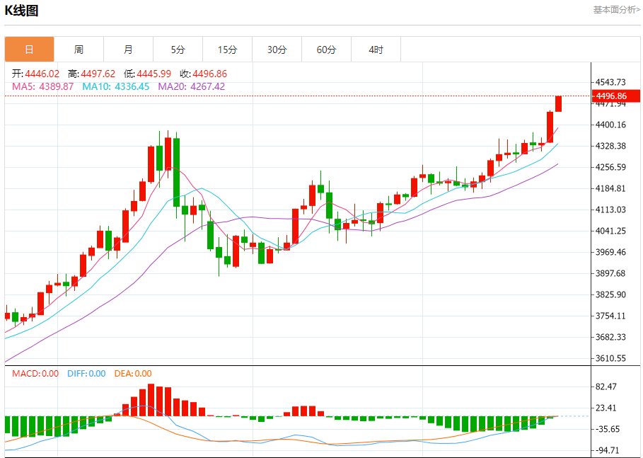 现货黄金:截止北京时间21:20,现货黄金上涨,现报4496.68,涨幅1.20%。纽市盘前,(黄金)价格在最近一次盘中交易中强劲上涨,达到4500美元的关键阻力,这一阻力是我们在之前的分析中的预期目标,在短期内主要看涨趋势占主导地位,其交易与该趋势的支撑趋势线一致,另一方面,我们注意到相对强度指标上出现了负面信号,在达到超买水平后,由于需要卸载一些超买条件,减少了最后的涨幅。