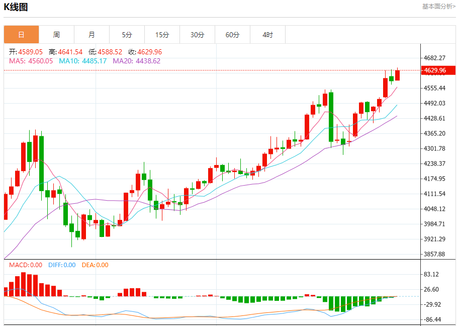 现货黄金:截止北京时间21:20,现货黄金上涨,现报4629.15,涨幅0.93%。纽市盘前,黄金价格(gold)在其最后一个盘中水平上的有限涨幅上结算,试图获得可能有助于其创下历史新高的看涨势头,在短期内主要看涨趋势占主导地位,尽管达到超买水平,但其交易沿着该趋势的支撑趋势线进行,伴随着其在EMA50上方交易所代表的动态支撑,提供了新的看涨动力。