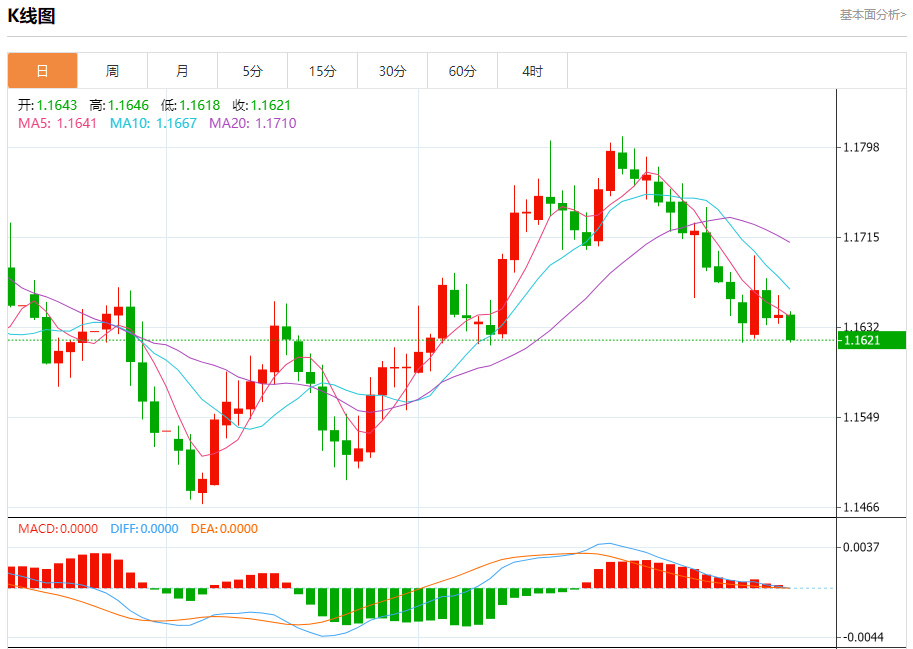 欧元/美元:截止北京时间21:20,欧元/美元下跌,现报1.1622,跌幅0.19%。纽市盘前,欧元兑美元的价格在最后一个交易日上涨,在达到超卖水平后,相对强度指标上出现了积极的重叠信号,以试图恢复之前的一些损失,并试图摆脱这种超卖状况,由于其交易低于EMA50,继续存在负面压力,强化了短期熊市修正趋势的主导地位,特别是其交易在通道范围内。