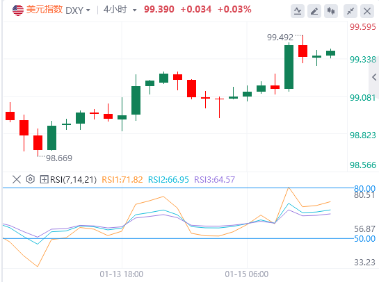 数据显示,美国上周初请失业金人数意外下降,经季调后降至19.8万人,远低于市场预期。这进一步强化了市场对美联储将在未来数月内维持高利率的预期。利率期货市场已将美联储首次降息的时间预期推迟至6月。受此推动,美元指数上涨0.24%,收于99.31,盘中一度触及去年12月2日以来的最高点。欧元兑美元相应下跌0.25%,至1.1613美元。