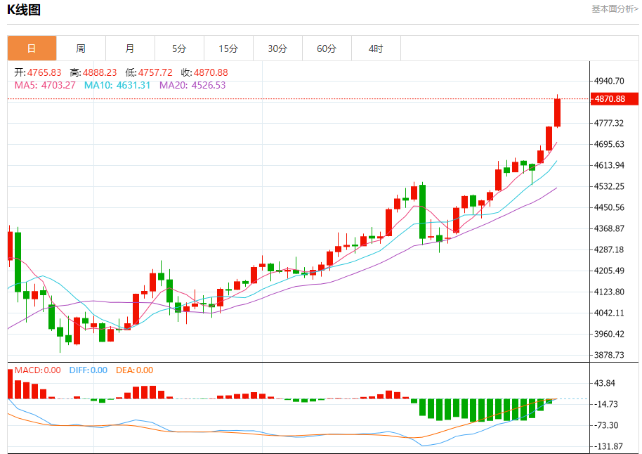 现货黄金:截止北京时间21:20,现货黄金上涨,现报4869.67,涨幅2.23%。纽市盘前,黄金价格在最后一个交易日继续上涨,主要看涨趋势在短期基础上完全占据主导地位,其交易沿着主要和次要趋势线进行,由于其交易在EMA50上方,正压力持续,另一方面,我们注意到相对强度指标在达到超买水平后出现了负面信号,这减少了最后的收益。